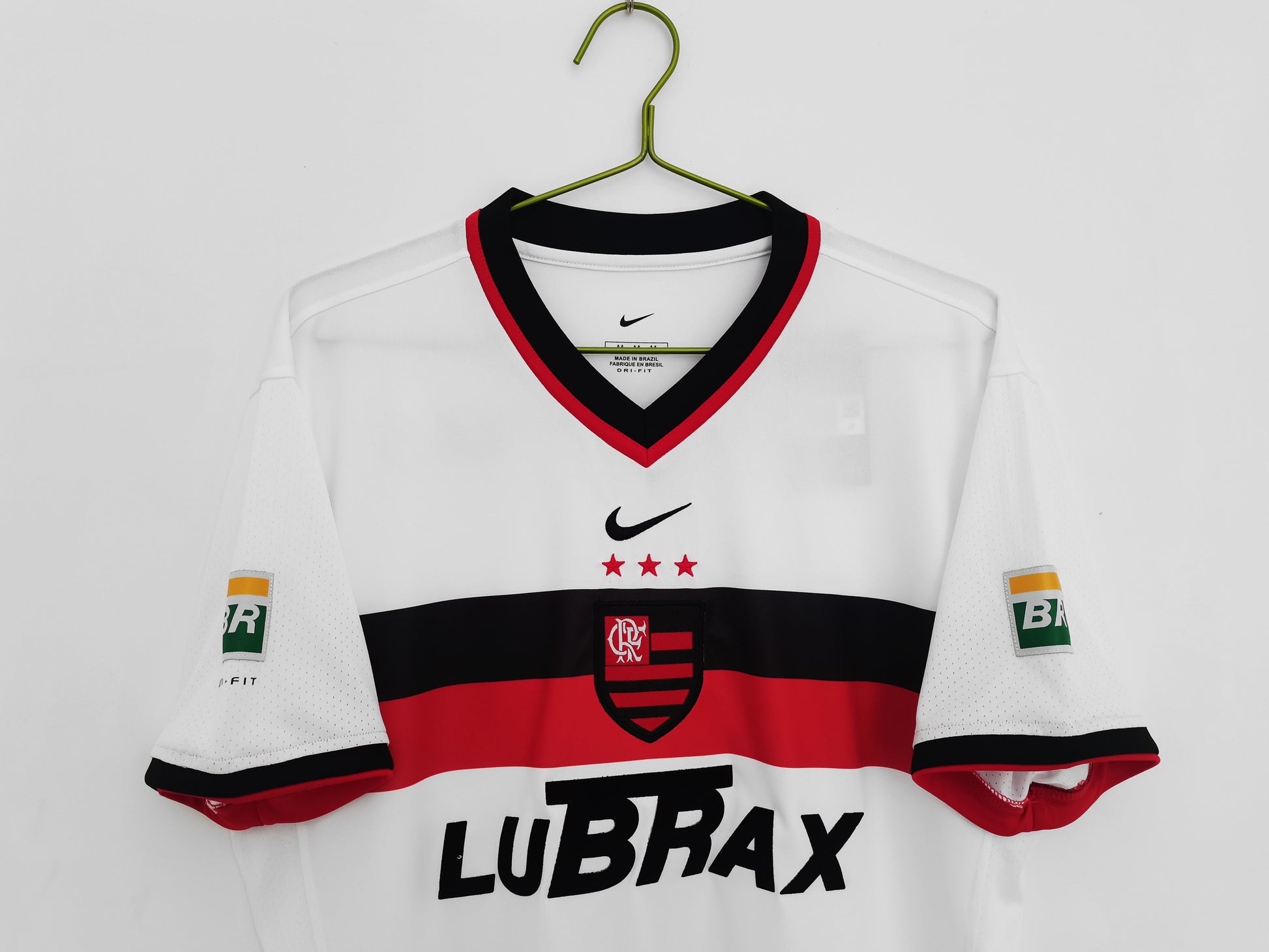 With white as its primary base, bold red and black stripes sweep across the chest—Flamengo's iconic color symbol, embodying the team's fiery passion and spirit. The three stars on the crest represent the club's accumulated glory, while the Nike logo adds a touch of professional athletic flair.