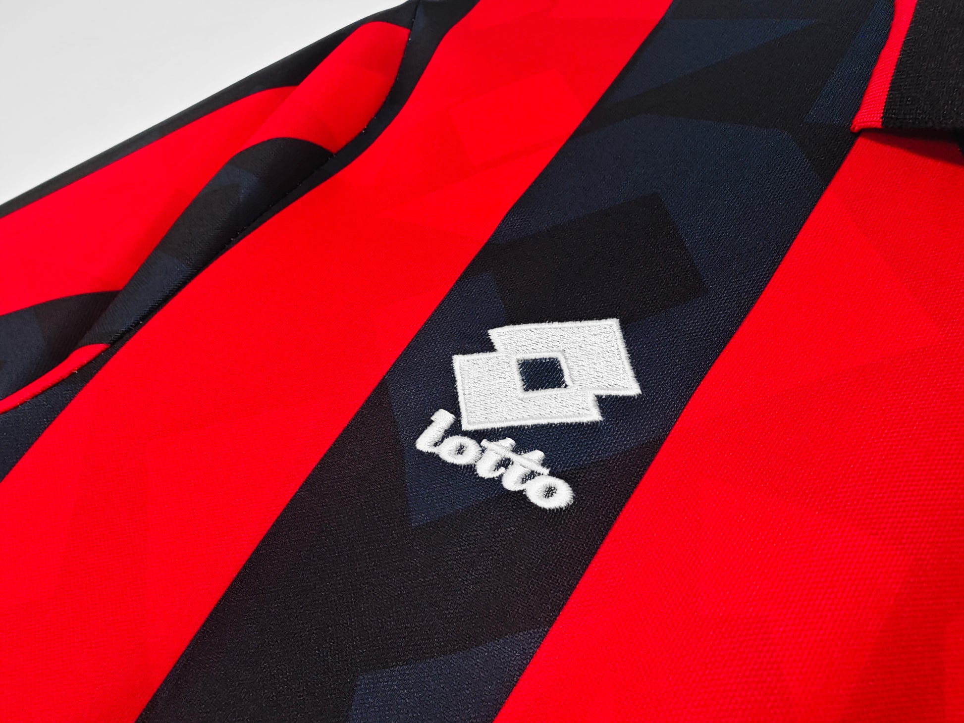 During the 1993/94 season, this red-and-black jersey accompanied AC Milan through their comeback journey following the departure of the “Three Musketeers.” Amidst Van Basten's injury, Gullit's exit, and the growing pains of Rijkaard's return to the Netherlands, Capello built a tactical system centered on the defensive line led by Baresi and Maldini, known as the “1-0 philosophy.” This approach ultimately secured victory in the 1994 UEFA Champions League final against Real Madrid. and Rijkaard's return to the Netherlands, Capello built the “1-0 Philosophy” tactical system around a defensive backbone led by Baresi and Maldini. This culminated in an unbeaten season with 22 wins and 12 draws, securing a third consecutive Serie A title, while also overcoming all obstacles to claim the European crown in the Champions League.