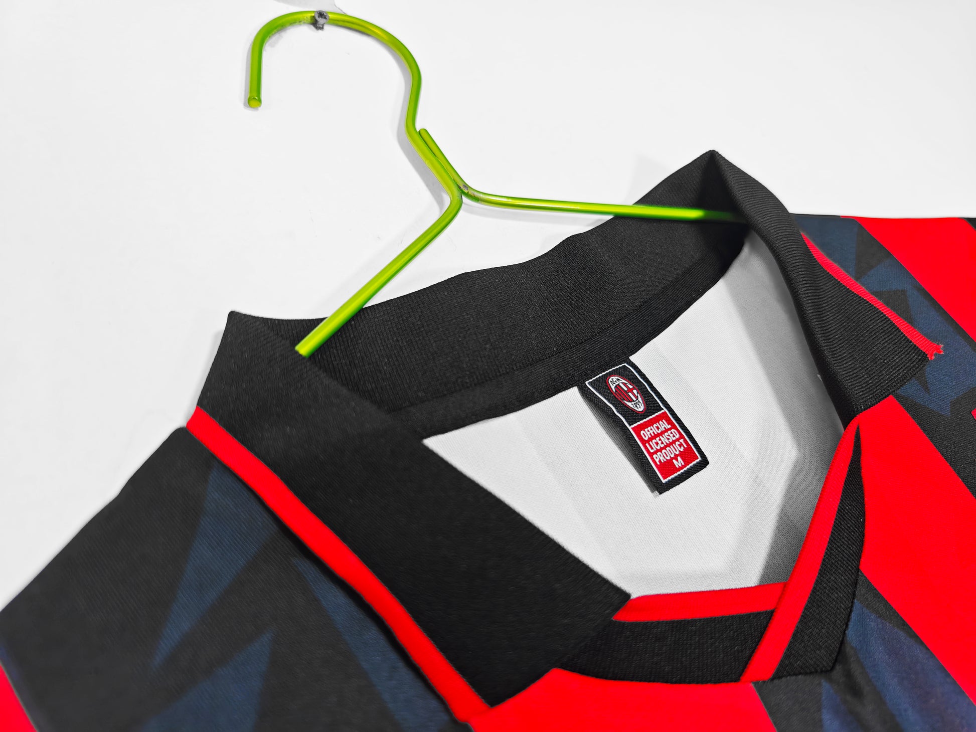 Today, the retro replica version meticulously recreates the original red-and-black stripe proportions and material details. From the feel of the acrylic blend fabric to the texture of the flocked numbers, every aspect strives to recreate the look of the original. Whether you're a die-hard Rossoneri collector seeking a piece of the Double Crown legend, a fashion enthusiast obsessed with 90s Serie A retro style, or a fan eager to decipher the tactical DNA of the Rossoneri dynasty, this jersey holds immense value. Wearing it transports you back to the electrifying San Siro stadium, immersing you in the red-and-black glow to feel the very essence of AC Milan's “rebirth from adversity” spirit, keeping that double-crown legend eternally alive.