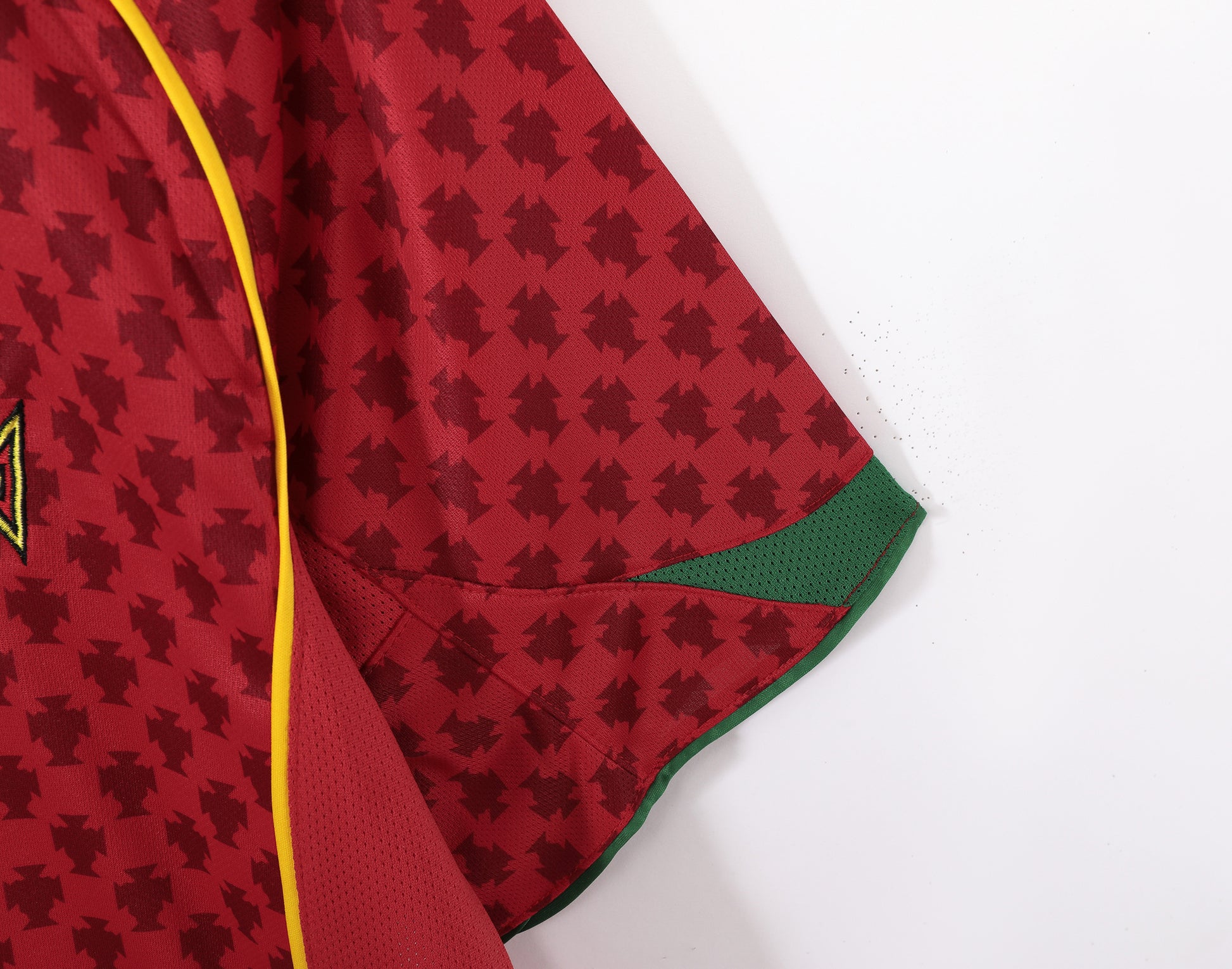 Crafted by Nike, this jersey continues Portugal's iconic crimson red theme, perfectly echoing the three colors of the Portuguese flag and showcasing national pride. The retro crew neck design is clean and sophisticated, with delicate gold stitching at the collar enhancing the overall texture. The embroidered crest on the chest boasts a three-dimensional shield shape paired with the team logo, exuding historical depth. A subtle checkered pattern hidden within the fabric creates a refined visual effect under different lighting, recreating the vintage style of 2000s football apparel. Constructed from breathable polyester, it balances on-field ventilation with everyday comfort. The tailored fit preserves vintage charm while meeting practical demands.
