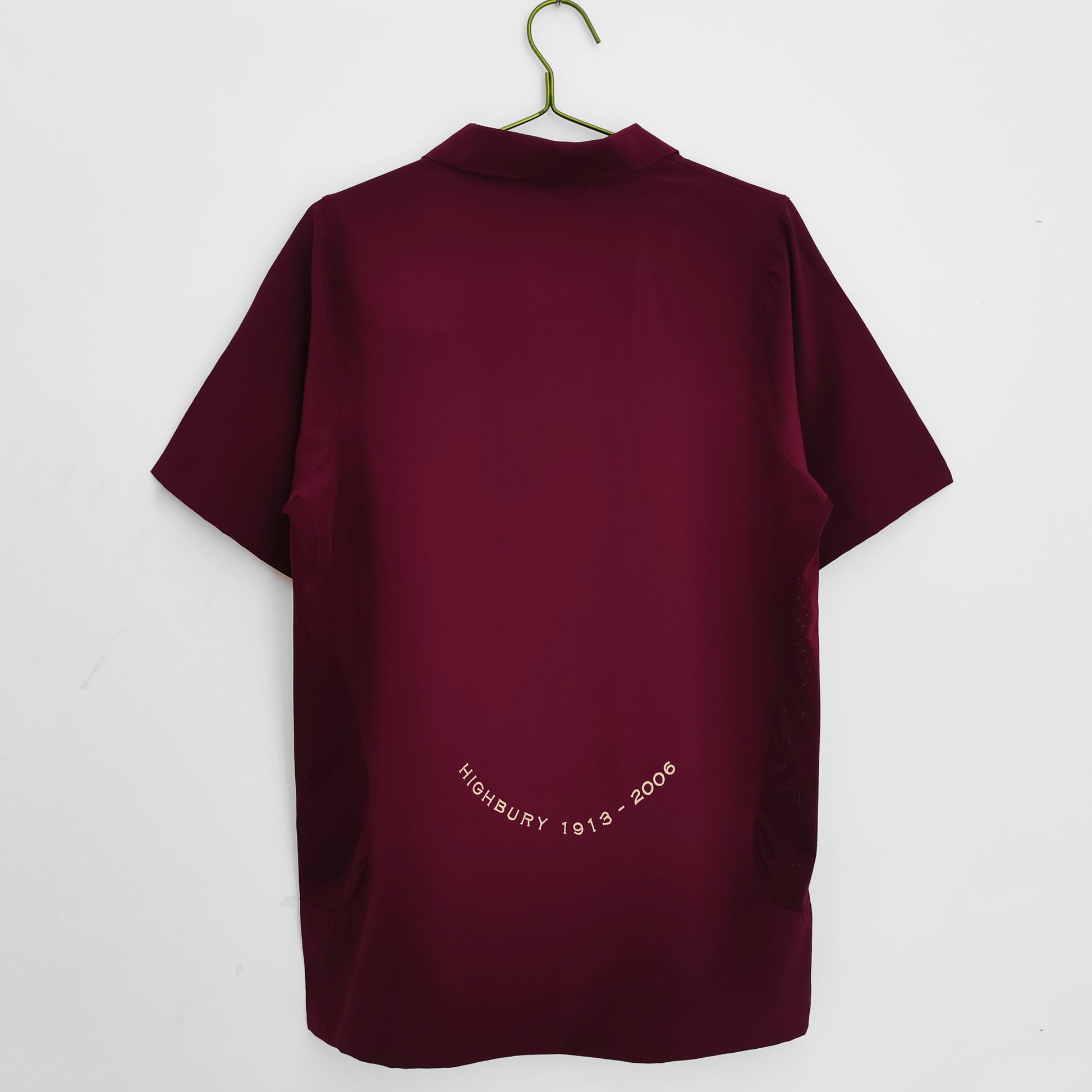 This retro jersey stands as a vivid testament to Arsenal's golden 2005/06 season! Having just bid farewell to Highbury and ushered in the Emirates era, the Gunners continued their legendary run with unyielding resilience. — Thierry Henry's 27 goals secured his second consecutive Premier League Golden Boot, while the Champions League campaign saw victories over Real Madrid and Juventus, culminating in the iconic penalty shootout triumph over Villarreal in the semifinals. These moments remain fiery memories for every Gunners fan.