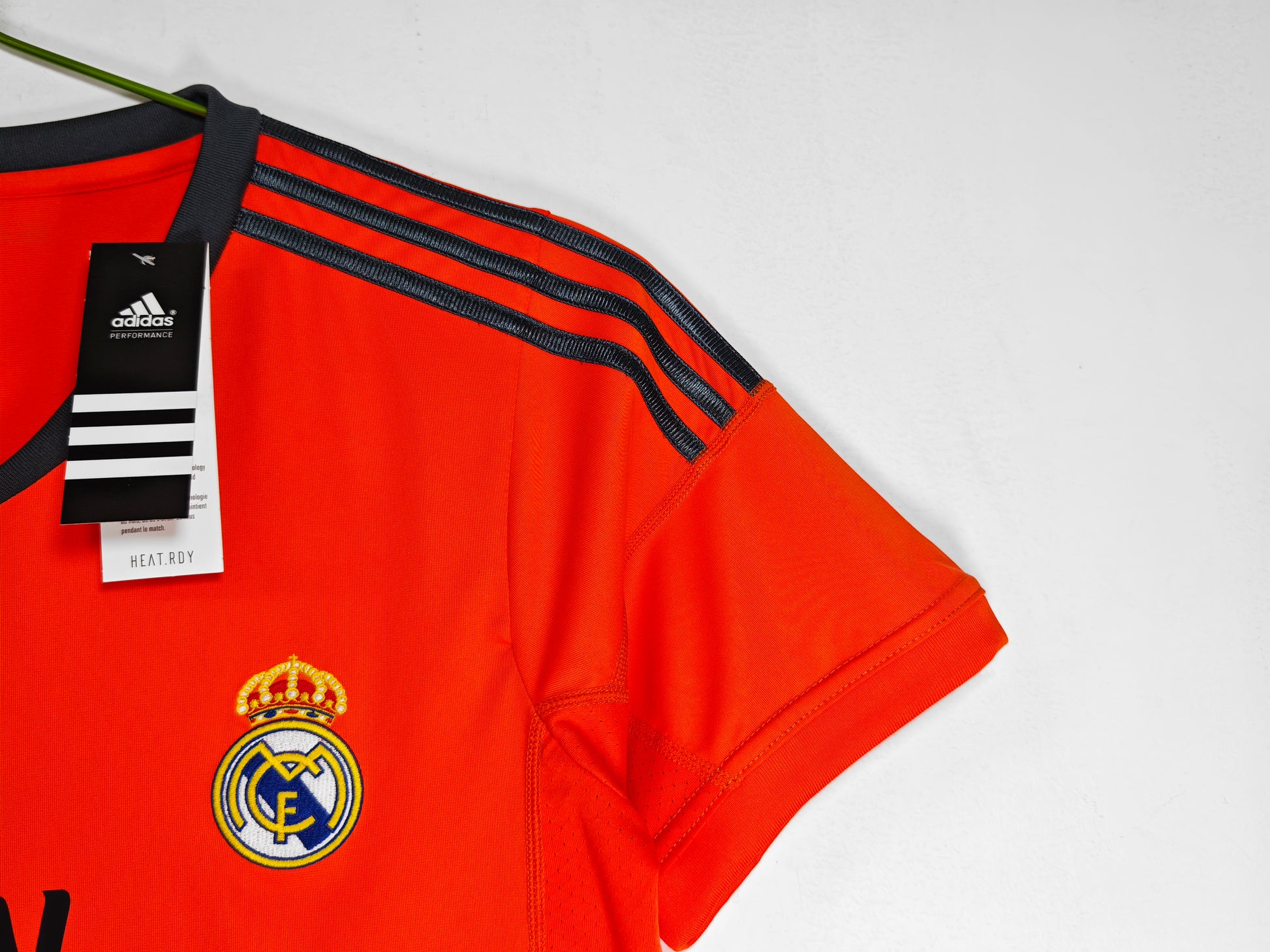 This away kit broke from Real Madrid's traditional white and blue palette with a bold, vibrant orange hue. The striking color not only shattered the monotony of typical away jerseys but also amplified the team's visual impact during crucial matches, cementing its status as one of the most talked-about kit designs in the 2013/14 football season.