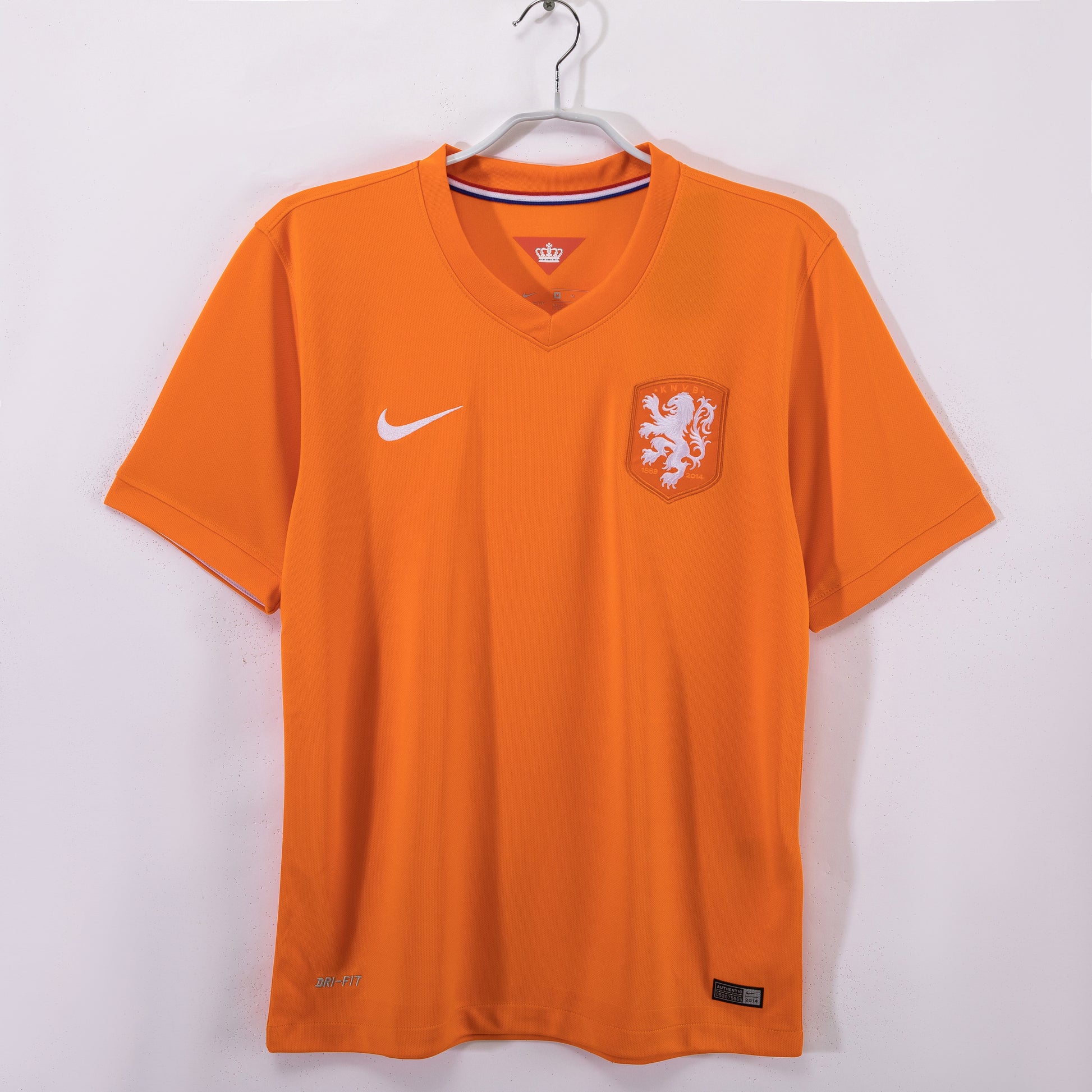 The 2014 Brazil World Cup saw this orange home jersey witness the “Orange Army's” avenging storm and glorious journey: in the second group stage match, wearing this jersey, they easily defeated Australia 2-0; in the final group match, they secured a 2-0 victory over Chile to advance as group winners. In the knockout stage, they defeated Mexico 1-0 and eliminated Costa Rica in a penalty shootout. Though they suffered a heartbreaking loss to Argentina in the semifinals, they swept Brazil 3-0 in the third-place match to secure bronze. Van Persie's diving header became a World Cup icon, while Robben's solo winner and Sneijder's midfield orchestration made orange the tournament's most dazzling hue, rewriting the modern chapter of “total football.”