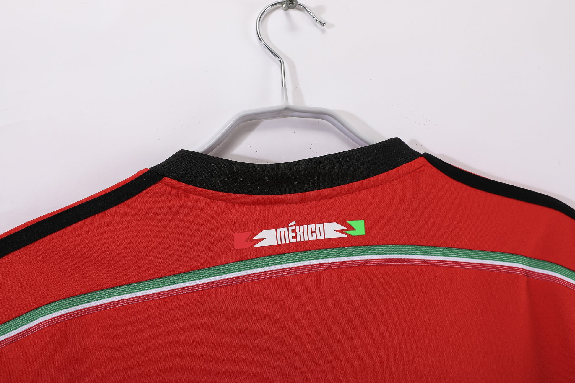 At the 2014 FIFA World Cup in Brazil, the Mexican national team took to the field wearing this retro red away kit. They advanced from the group stage as runners-up after defeating Cameroon 1-0, drawing 0-0 with Brazil, and defeating Croatia 3-1. In the Round of 16, they engaged in a goal-filled battle against the Netherlands, leading 2-1 before suffering a heartbreaking stoppage-time winner that ended their campaign. Goalkeeper Guillermo Ochoa earned legendary status with multiple spectacular saves, while the incisive attacks from Javier Hernández and Carlos Peralta became highlights of the tournament. Crafted by Adidas, the jersey features a passionate red base, with white three-stripes on the shoulders echoing the brand's classic design. The embroidered team crest on the chest pairs with a retro crew neck, while subtle Mexican flag motifs are woven into the side panels. This minimalist design seamlessly blends vintage aesthetics with visual impact. For fans, this jersey stands as a testament to Ochoa's legendary performance and the team's relentless spirit. Breaking from Mexico's traditional color scheme, its bold red hue encapsulates the memories of a classic World Cup campaign. The retro design aligns with contemporary collectible trends, serving as a precious tribute to Mexico's glorious journey in 2014.