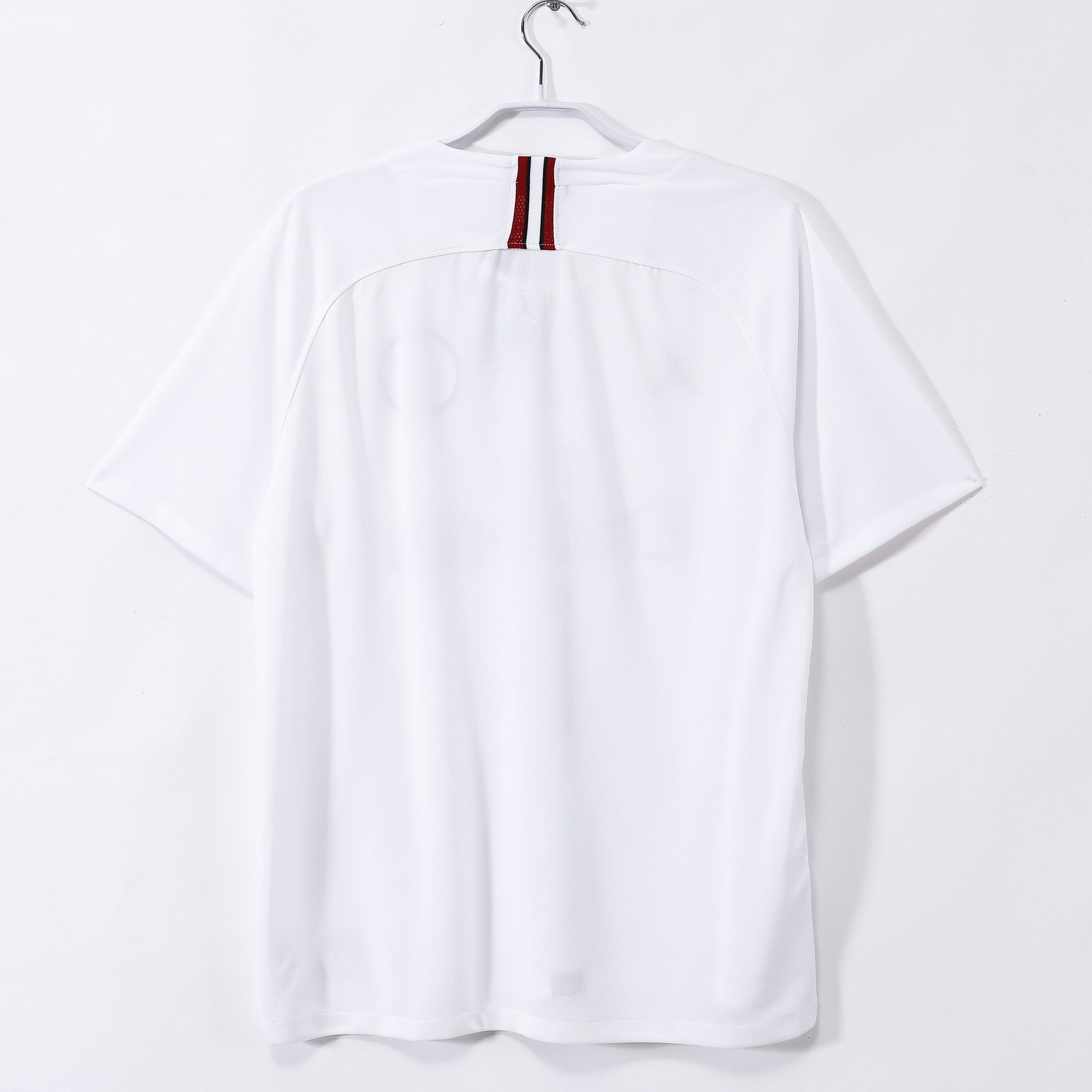 The jersey features Paris' classic off-white hue, inspired by the stone tones of the city's landmarks, with the iconic V-neck lacing design embodying French elegance. The golden crest and Nike swoosh complement each other, while the back conceals a tribute to the Arc de Triomphe. Iris embroidery on the collar symbolizes French pride, and the Ooredoo sponsorship logo replicates the original design. Dri-FIT fabric ensures breathability and quality.