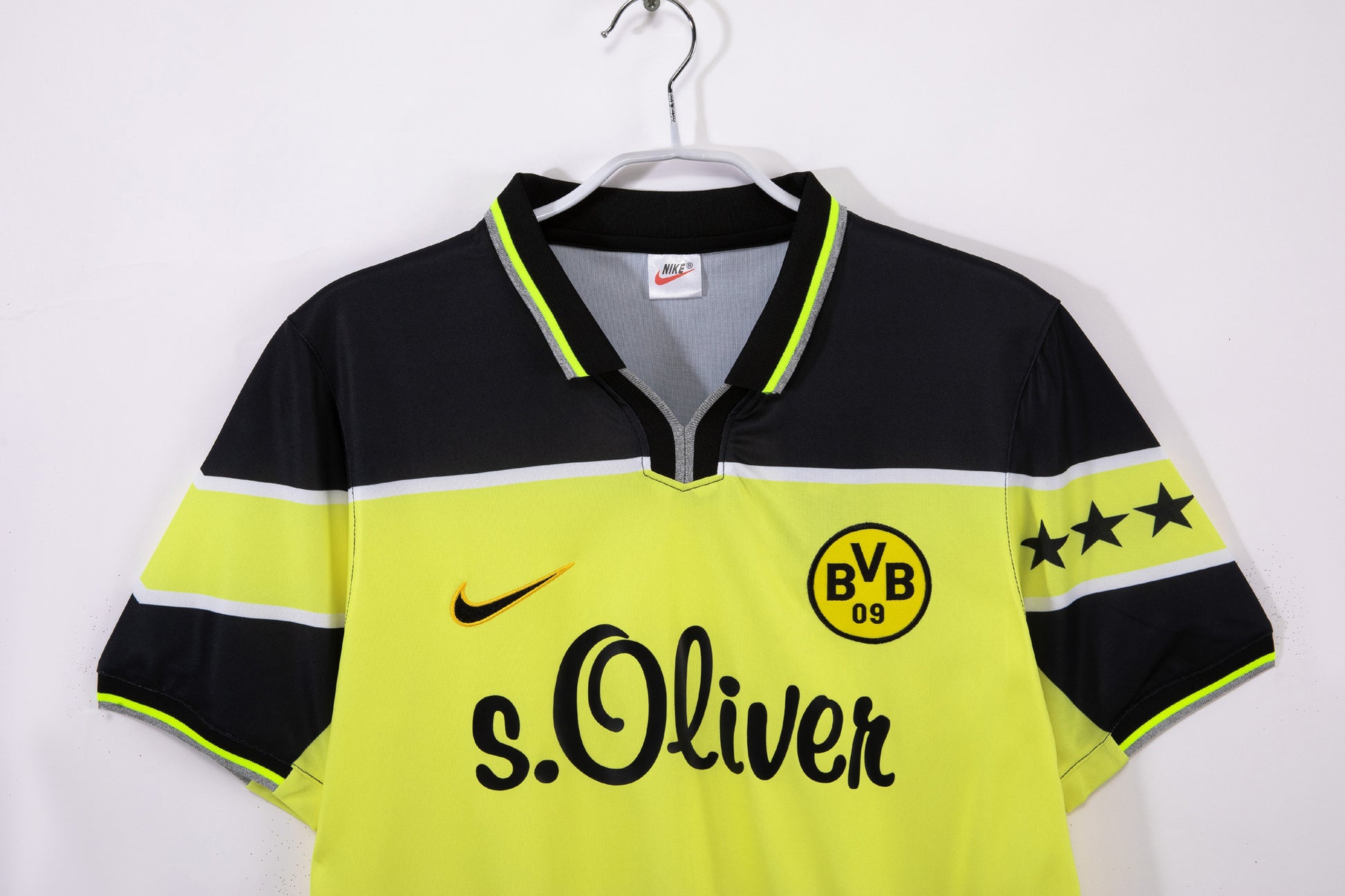 Today, this retro replica meticulously recreates the design, color scheme, materials, and craftsmanship of the 1997 season jersey. From the stripe width and embroidered crest to the flocked numbers, every detail strives for authenticity. Whether you're a die-hard Dortmund fan seeking a commemorative piece from the club's Champions League triumph, a fashion enthusiast captivated by 90s retro sportswear, or a supporter eager to experience the magic of European football's golden era, this 1997 Dortmund home retro jersey delivers. Slip it on and transport yourself to Munich's Olympic Stadium in 1997, reliving the “Yellow Bees” crowning moment atop Europe. Let the yellow-and-black glory endure forever in the present.