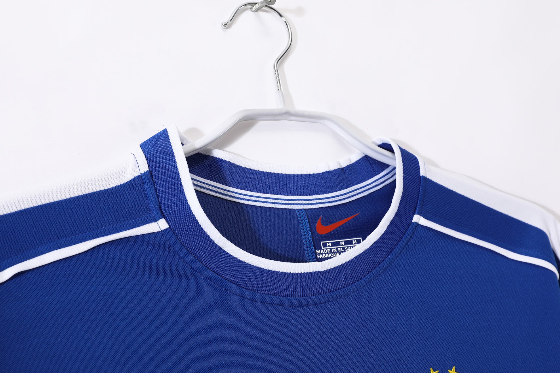 At the 1998 FIFA World Cup in France, the Brazilian national team competed in this long-sleeved retro away jersey. They advanced from the group stage with two wins and one draw, then defeated Chile and Denmark in the knockout rounds. After overcoming the Netherlands in a penalty shootout in the semifinals, they reached the final. Though ultimately falling to France and finishing as runners-up, the brilliant performances of stars like Ronaldo and Rivaldo left indelible memories.